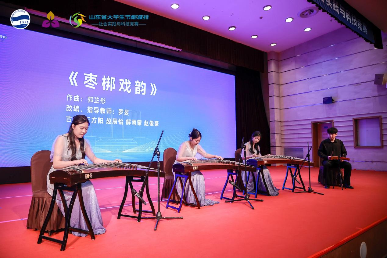 随后,艺术学院带来的民乐重奏《枣梆戏韵》与男高音独唱《等待》依次上演,典雅旋律与昂扬格调有机融合,既为赛事营造了严肃务实的氛围,也以艺术表达呼应低碳发展的时代主题。